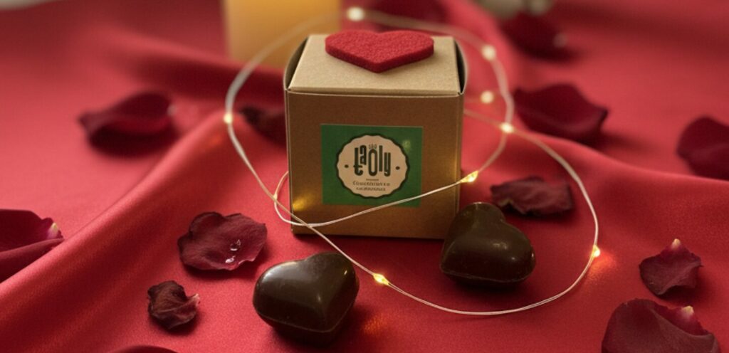 Un coffret avec à l’intérieur, des cœurs en chocolat au lait et chocolat noir, délicatement façonnés, renferment un caramel onctueux qui fond lentement, comme un secret bien gardé.