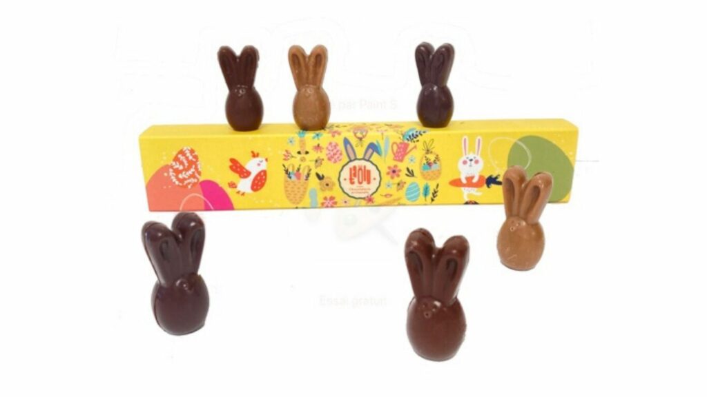 Garni de friture de chocolat, ce lapin en chocolat noir, lait ou blond est l’occasion de partager un beau moment de gourmandise en famille.