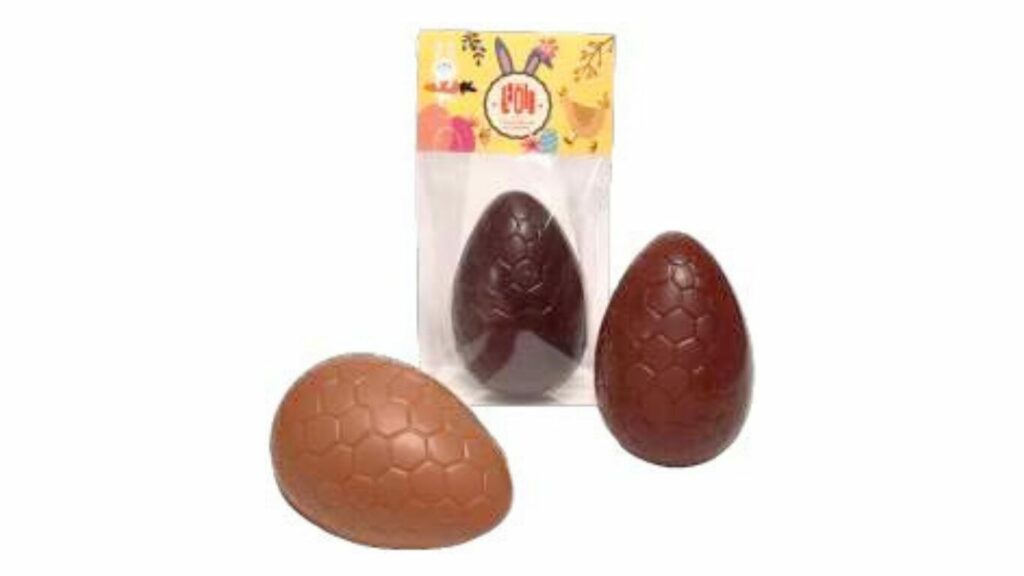 Garni de friture de chocolat, cet oeuf en chocolat noir, lait ou blond est l’occasion de partager un beau moment de gourmandise en famille.